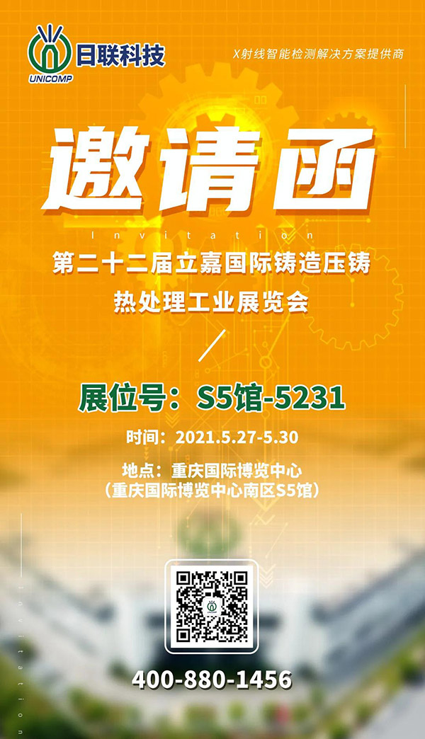 第 22 屆立嘉國(guó)際鑄造壓鑄熱處理工業(yè)展將于 2021年5月27至30日在重慶國(guó)際博覽中心舉行。日聯(lián)科技位于S5館5231展位,此次將展出UNC系列X射線智能檢測(cè)設(shè)備。
